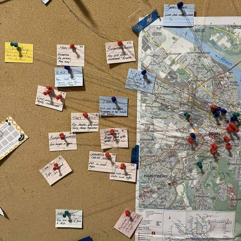 When I moved to Bonn, my introduction flyer to the University had a nice map of the city and the Rhein. I took this map and pinned it up on a board in the student dorm kitchen. I started pinning restaurants, cafes, bars, and attractions I discovered with coloured pins and string. I would capture the basics, name, price, and a short recommendation on what to eat or drink. Fast-forward four years and I am taking this concept and turning it into a food guide to share with anyone who enjoys a good time and tasty food.